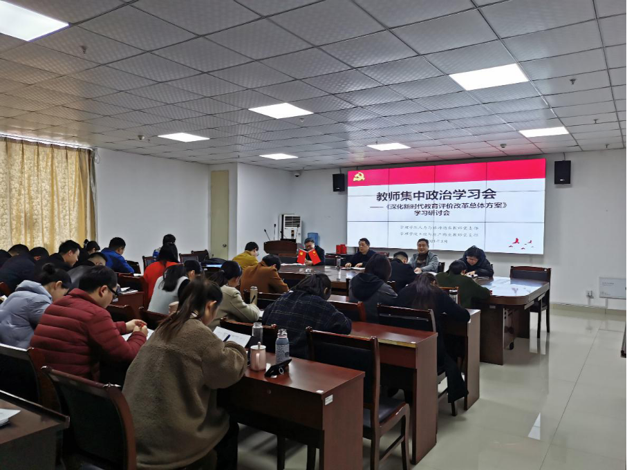 为深入学习《深化新时代教育评价改革总体方案》,贯彻落实文件精神,切实做好教育教学工作,管理学院教师支部于3月17日下午召开教师集中政治学习会,传达并学习文件精神。