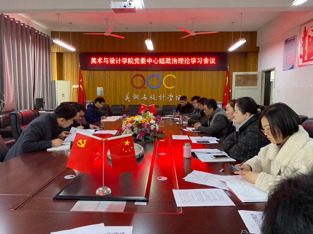 3月17日,美术与设计学院在艺术楼B402会议室召开党委中心组政治理论学习会议,会议由党委书记陈述立主持,院领导班子成员、党委委员、党支部书记参加会议。