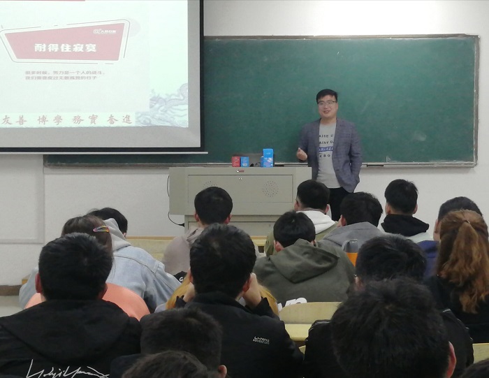 交流会开始,赵广震先进行了简单的自我介绍,之后给备考的学生提供了一些建议,提出要全身心投入、找到适合自己的节奏、耐得住寂寞、不轻言放弃、提高心理承受能力等,对为什么要考研、怎样准备考研做了详细讲解,并分别从考研专业、学习科目、学习计划、学校选择等几方面分析。随后,卞振涛老师对考研期间的注意事项进行了补充说明。老师们风趣的语言、开门见山的讲述风格、清晰的条理赢得了同学们的阵阵掌声。整场交流会现场激情洋溢,同学们积极踊跃,交流会圆满结束。