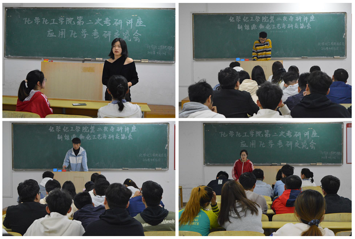 为进一步加深同学们对研究生考试的认识,了解考研形势,加强备考的针对性。4月12日19:00,化学化工学院在逸夫楼B307,B308,B311教室举办了本学期第二期考研交流会,此次考研交流会邀请了10名今年考研成功的17级学生进行经验分享,18级部分同学参加。