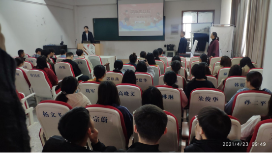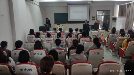 4月23日上午,外国语学院在逸夫楼一楼会议室举办了2021届毕业生专场招聘会。党总支书记王华、党总支副书记副院长郝景东、毕业班辅导员董玉清和徐国庆参加了此次招聘会。