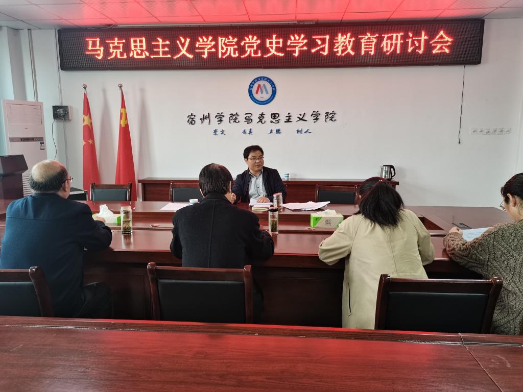 4月25日上午,马克思主义学院在会议室召开党史学习教育专题研讨会,马克思主义学院党总支委员参加会议,会议由学院党总支书记赵国付主持。