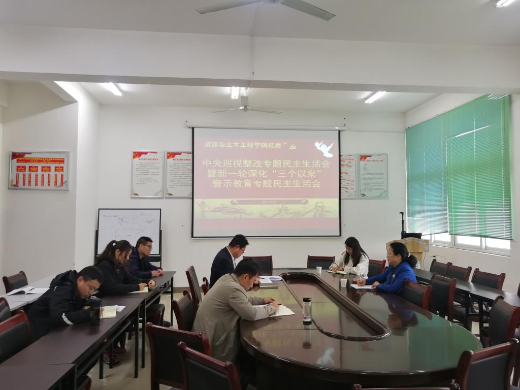 按照宿州学院党委《关于高质量开好处级领导班子和处级党员干部中央巡视整改专题民主生活会暨新一轮深化“三个以案”警示教育专题民主生活会的通知》(校党组字〔2021〕5号)的要求,2021年4月25日下午,资源与土木工程学院在工科楼A楼314会议室召开了处级党员领导干部中央巡视整改专题民主生活会暨新一轮深化“三个以案”警示教育专题民主生活会。民主生活会由院党委负责人张持堂主持,处级干部参加,科级干部列席会议,校党委组织部部长陈啸吟莅临会议指导并作点评。