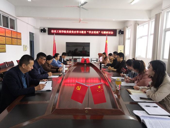 根据学校党史学习教育实施方案安排,2021年4月28日上午,信息工程学院党委在工B315会议室召开党史学习教育“学史明理”专题研讨会。会议由信息工程学院党委书记路红梅主持,党委副书记吴翠华、党委委员以及全体辅导员、班主任参加了会议。