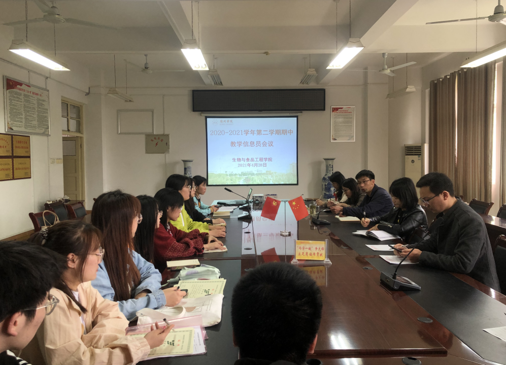 4月28日下午,生物与食品工程学院在实验楼A206会议室召开了本学期期中教学信息员会议。生物与食品工程学院副院长张兴桃、院督导组成员、教学秘书、教务员、各班级教学信息员等20余人参加,会议由张兴桃主持。