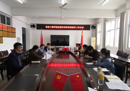 2021年4月29日上午,信息工程学院党委在工B315会议室召开宣传和思想政治工作会议。会议由信息工程学院党委书记路红梅主持,党委副书记吴翠华、党委委员以及全体辅导员、班主任参加了会议。