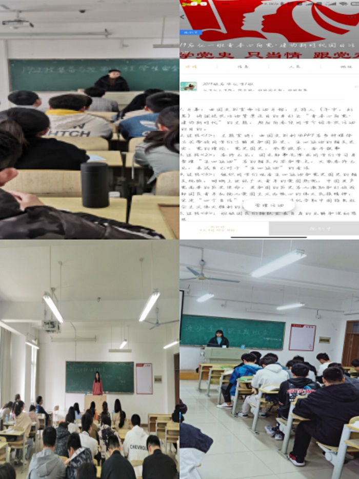 本次团日活动内容丰富,形式新颖,具有深刻的教育意义。2018级过程装备与控制工程班团支部开展了“树立新时代劳动教育观”主题交流会,并组织学生查阅相关劳模代表,学习它们的事迹;2018级化学工程与工艺班团支部举办“学党史,知党情,跟党走”主题班会,借此来增强大学生对党的归属感与认同感;2018级新能源材料与器件班团支部举办,“学习百年党史,凝聚青春力量”主题班会,号召同学们磨练自我,传承先辈红色精神;2018级应用化学二班团支部开展“学习百年党史,凝聚青春力量”主题交流会,加强同学们对党史的了解;2018级应用化学一班,以讲座的形式给同学们讲述党史精神;2019级过程装备与控制工程举办了“安全教育月”主题班会,并通过很多途径,提高大学生的安全意识;2019级化学工程与工艺班团支部围绕“学习百年党史,凝聚青春力量”主题,组织学生观看党史纪录片,从而深入了解党史;2019级新能源材料与器件班团支部,组织学生积极探讨有关“学习百年党史,凝聚青春力量”,并观看相关视频、文件,共同交流;2019级应用化学二班团支部带领同学学习关于百年党史的材料,并观看相关视频;2019级应用化学一班团支部开展“青春心向党,建功新时代”主题班会,利用PPT等多种媒体方式带领同学们了解党史;2020级化学工程与工艺班团支部组织学生进行小组讨论,并在讲台上分享心得感悟;2020级新能源材料与器件班团支部举办“喜迎建党100周年”主题班会,借此增强同学们对党史的学习,强化班级的凝聚力和学生的责任感;2020级应用化学一班团支部以让同学们写观影心得的方式来加深同学们对党的认识;2020级应用化学二班团支部开展“学习百年党史,凝聚青春力量”主题班会,并以知识问答形式,呼吁大家学习和发扬中国共产党员革命精神。
