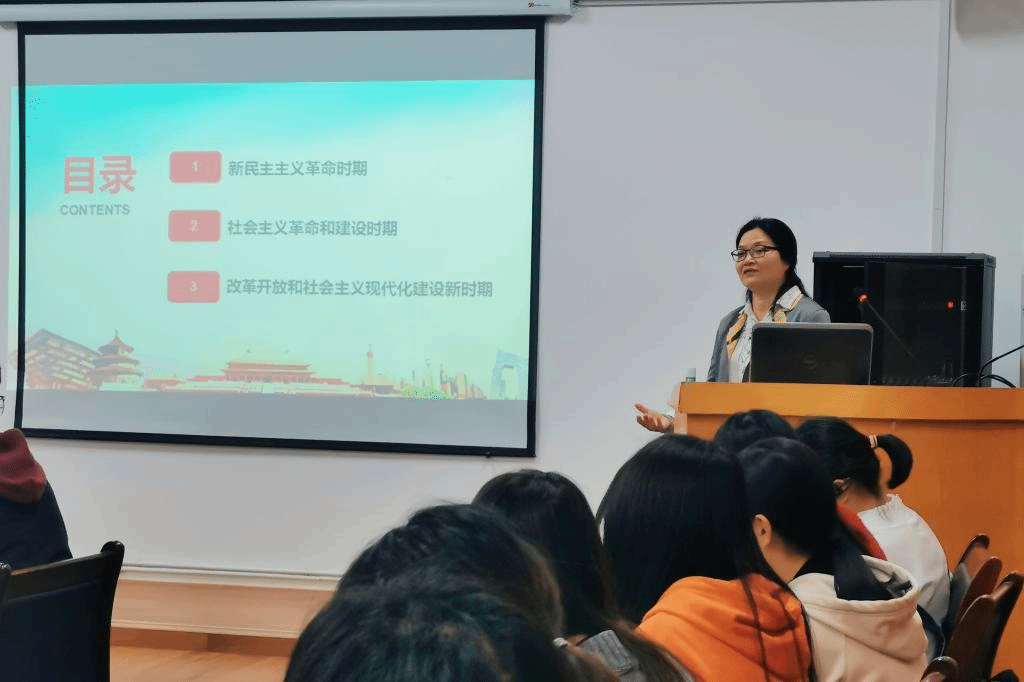 李月云将中国共产党的历史分为“新民主主义革命时期”、“社会主义革命和建设时期”、“改革开放和社会主义现代化建设新时期”三个时期,同时结合党史国史、相关案例来展开本次党课。