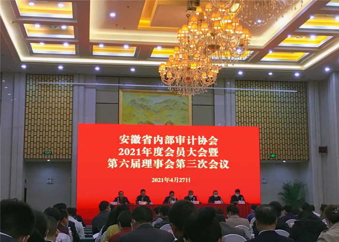 4月27日,安徽省内部审计协会2021年度会员代表大会暨第六届理事会第三次会议在高速开元国际大酒店召开。省审计厅内审指导监督处处长王念义,省监委驻省投资集团公司监察专员、党委委员、纪委书记李文,省内审协会副会长周加来、翟胜宝、安广实在主席台就坐,全省会员单位参加会。宿州学院审计处吴玲处长和李妍参加了本次会议。