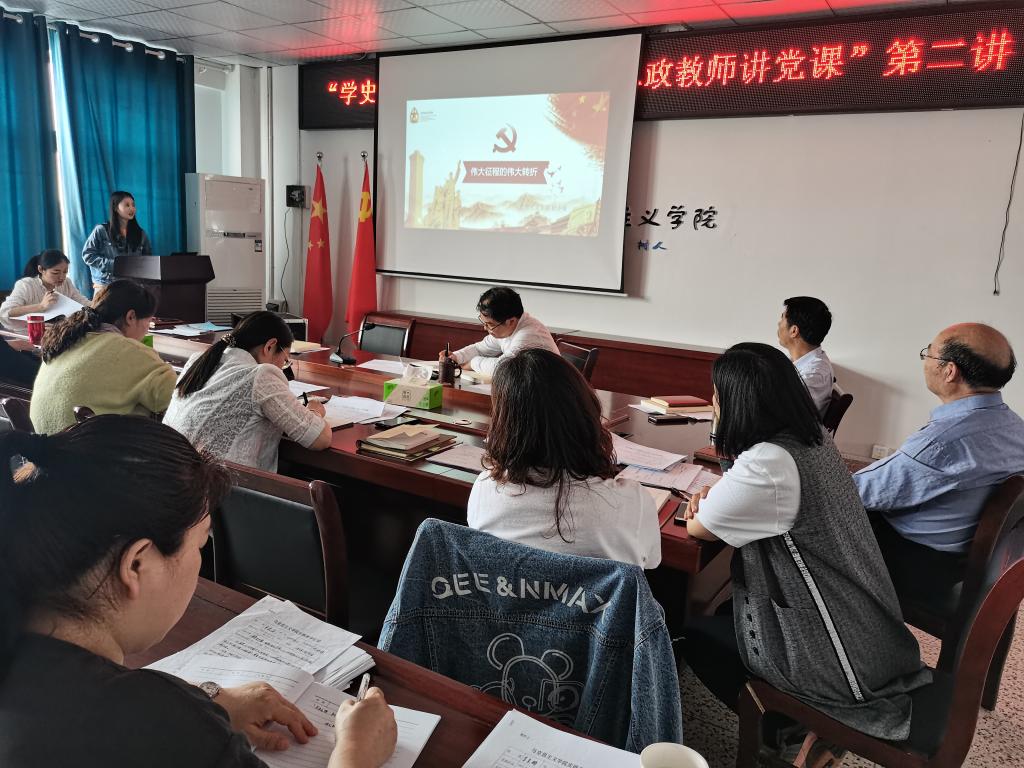 集中学习后,“学史立德·树人力行---新进思政教师讲党课”第二讲开始。教师第二党支部党员徐小曼老师为大家讲授了《伟大征程的伟大转折》主题党课。