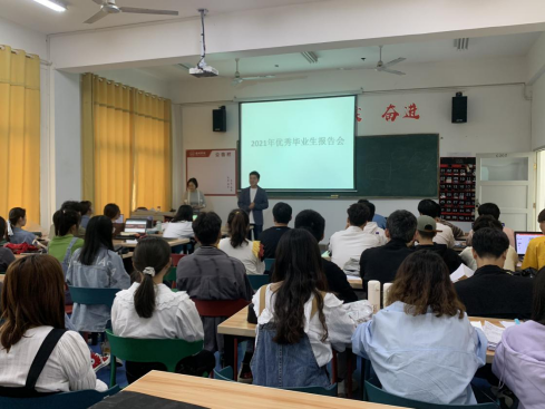 为深入推进党史学习教育,激励和指导大学生尽早树立人生目标,5月11日,美术与设计学院邀请2014届优秀毕业生刘健返校,在教学楼C102教室举办了“志存高远逐梦前行”为主题的优秀毕业生返校汇报会,就自己参加工作后的体会,结合其在校的学习,与同学们进行分享。