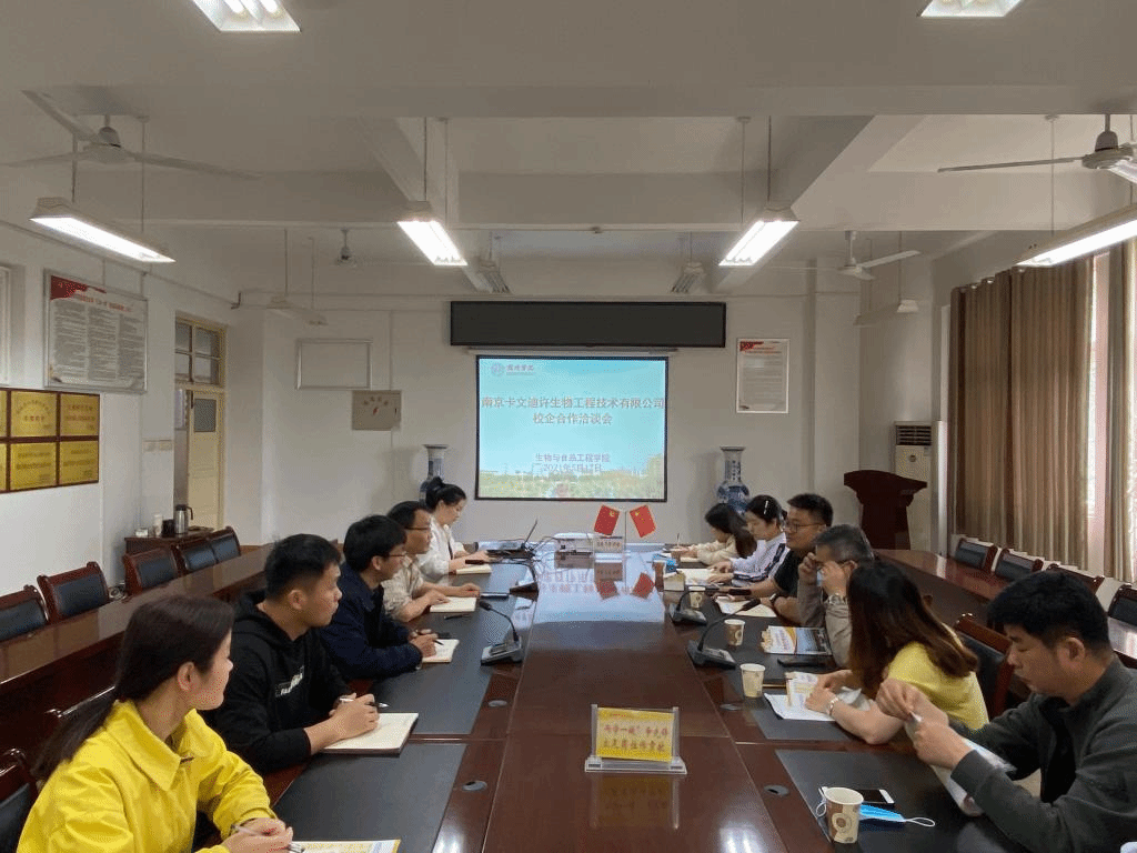 5月17日下午,由宿州市经济开发区招商局朱永卿等相关负责人牵头,生物与食品工程学院与南京卡文迪许生物工程技术有限公司校企合作洽谈会在实验楼A206会议室召开,院党委书记赵亮,副院长张兴桃,生物与药学教研室主任李秀丽和就业专干甘守伟和南京卡文迪许生物工程技术有限公司许总等一行4人参加会议。