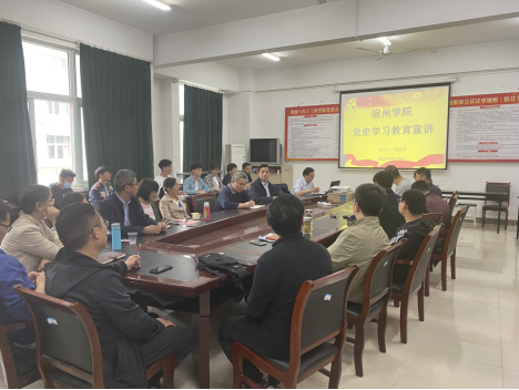 5月19日下午,机械与电子工程学院在工科C楼三楼大会议室开展党史学习教育宣讲会,宣讲会邀请了宿州学院党史学习教育宣讲团成员、后勤管理处处长周家华主讲。机械与电子工程学院全体教师和学生代表参加,宣讲会由机械与电子工程学院党委书记刘超主持。