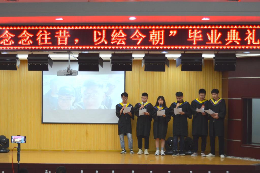 典礼在老师们对毕业生的祝福视频中拉开帷幕,老师们给毕业生送上了美好的祝愿,祝愿他们前程似锦,一帆风顺。资源学院党委书张持堂致辞,他首先祝贺同学们满载四年的学习收获成功取得学位,同时对同学们的未来表达了美好祝福并表示母校及各位老师都是大家坚实的后盾,会为每位学生精彩的人生喝彩。歌曲《别知己》,朗诵《颂君别》以及小品《再见了!我的室友》,每一个节目都寓意深刻,学弟学妹们用独特的演绎方式,传递出对学长学姐们的祝福。张持堂一首激昂的歌曲《再也不能这样活》将典礼推向了高潮。最后,典礼在毕业生代表演唱的《成都》中缓缓落幕。