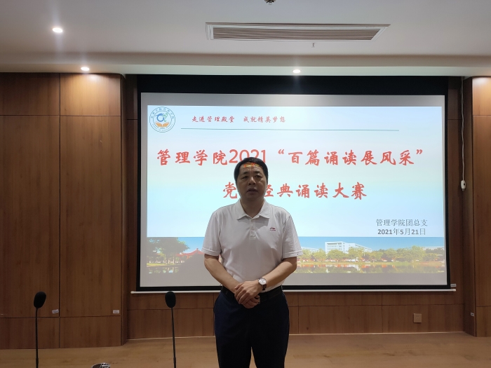 为隆重庆祝中国共产党百年华诞,讴歌中华民族实现伟大复兴的百年奋斗历程,5月21日中午,管理学院团总支在实训楼C502承办学院党委“七个一百”活动之一:“百篇诵读展风采”——庆祝建党一百周年主题诵读活动。学院党委书记刘大为、团总支书记高歌出席本次活动。