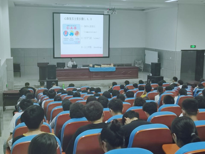 为了落实宿州学院关于大力加强师生安全教育的文件精神,我校体育运动委员会联合体育学院举办的《体育与健康》系列讲座第五期正式推出。为进一步提高我校学生对心肺复苏的认知水平,最大程度的避免意外伤害事故的发生,体育学院赵凯军老师于2021年5月26日在学院报告厅做了“紧急救护——心肺复苏”的专题讲座。全校共计两百多名学生参加讲座。