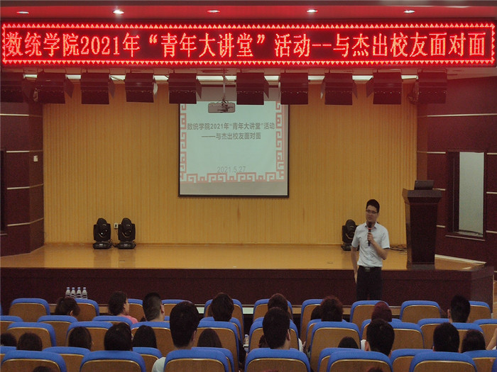 5月27日下午2:30,数统学院学院在招聘大厅举行了“青年大讲堂”活动,在校学生与青年杰出校友面对面交流。本次青年大讲堂活动主要由优秀毕业生戎放龙校友给同学们进行经验交流与分享。