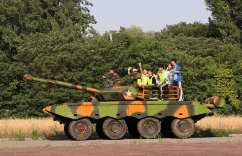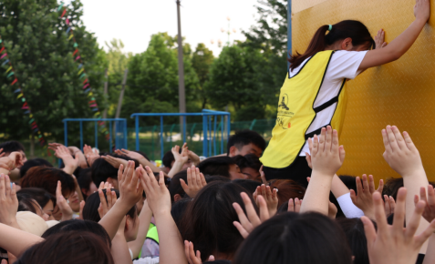 下午开展的“攻防箭” “爱我国防-坦克出击”“真人CS”,“毕业墙”等项目,老师积极参与,与学生竞技比拼,气氛热烈,增加师生互动,促进情感交流。模拟军队作战,锻炼学生开拓思维,激发勇气与信念。毕业墙的接力攀爬,点燃高潮,人梯者的竭力坚持,同学间的真情互助,教练的振奋性鼓舞都直击人心,令人感动。