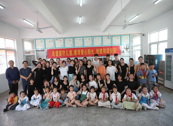 按照学校党史学习教育要求,开展“我为师生办实事”实践活动,五月三十一日上午,体育学院20级体育舞蹈表演专业学生在刘卫东老师的带领下,前往淮北市濉溪县南坪镇进行爱心向党、快乐成长------六一节关爱留守儿童、播撒爱心阳光实践活动.
