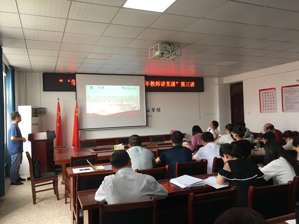 6月9日,马克思主义学院举行“学史立德·树人力行---新进思政教师讲党课”第三讲活动,学院党总支书记赵国付主持会议,全体党员和教职工参加。