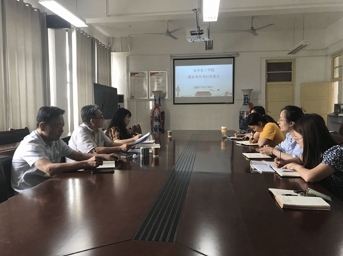 6月16日下午,化学化工学院在会议室召开学生安全稳定工作会和期末考风考纪布置会,会议由化学化工学院党委书记徐基贵主持,副院长卓馨、副书记史洪伟以及全体辅导员参加。