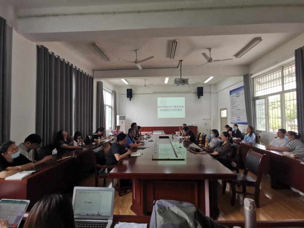 6月16日,音乐学院在一楼会议室召开2021届毕业生文明离校工作布置会,院长、党委副书记顾大海;党委副书记(临时负责)徐强;副院长陈燕秋、党委副书记、纪委书记王善虎以及全体教职工参加了会议。本次会议由徐强书记主持。