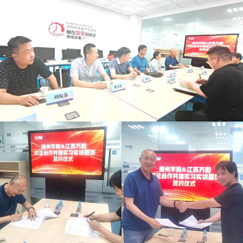 6月16日下午,考察组一行首先来到了位于南京的江苏万和系统工程有限公司,受到了总经理余志勇、业务经理李洪武、教学副总监许宏俊的热烈欢迎。江苏万和系统工程有限公司是从事软件系统开发和教育认证培训的IT企业,是华为技术有限公司的生态圈战略合作企业。校企双方就实习实训、课程嵌入、师资培训、华为认证培训、大学生创新创业俱乐部等方面进行了交流并达成一致意见。随后,校企双方代表签署了专业实习实训基地共建协议,宋院长代表学院对江苏万和系统工程有限公司进行“网络工程专业实习实训基地”授牌。