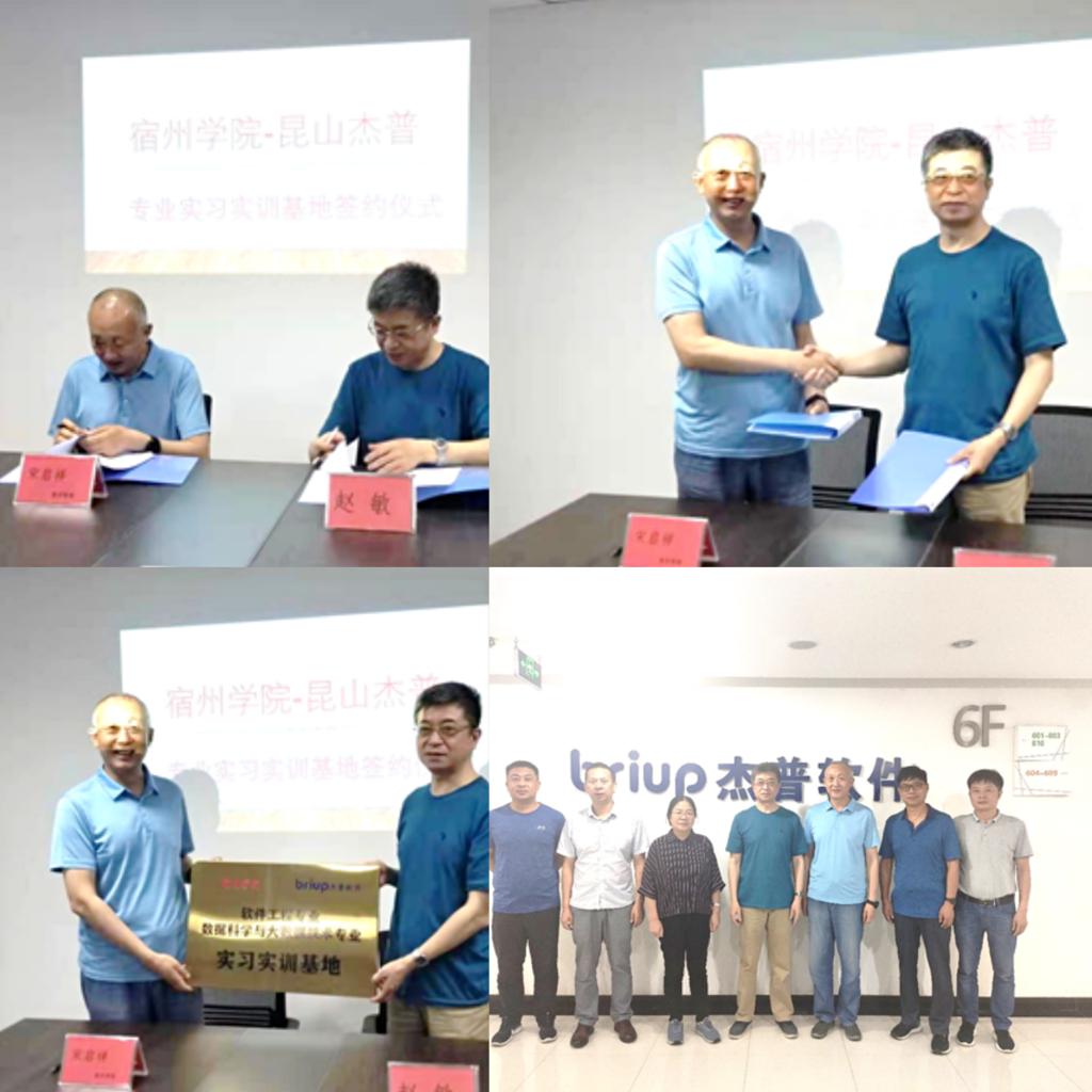 6月17日下午16:00,考察组一行来到了位于昆山的昆山杰普软件科技有限公司,受到了公司董事长赵敏、市场部经理齐俊的热烈欢迎。校企双方就共建“智能软件产业学院”、课程嵌入、专业实习实训、师资培训、课程共建等方面进行了深入交流并达成合作意向。随后,校企双方签署了专业实习实训基地共建协议,并共同为“宿州学院软件工程专业实习实训基地”和“宿州学院数据科学与大数据技术专业实习实训基地”揭牌。