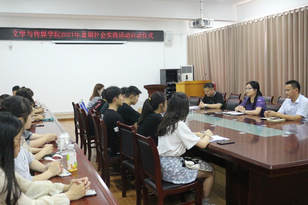 为切实增强当代大学生的社会实践能力,推进暑期社会实践活动有序、有效开展,激发广大学生热爱劳动、体验职场岗位的热情,6月24日13:50,文学与传媒学院2021年暑期社会实践活动启动仪式在东教A303举行。文学与传媒学院党委书记李月云、副书记王绍卫、辅导员王龙龙、校暑期社会实践团队负责人、2019和2020级各班级负责人参加仪式,启动仪式由王龙龙主持。
