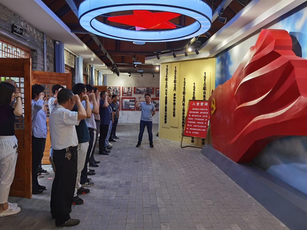 活动的最后,在第三展厅的党旗前,全体党员干部面对党旗进行集体宣誓,重温入党誓词。通过参观学习,大家纷纷表示,要牢记中国共产党为人民的初心使命,更加坚定地承担起新时代的职责与使命,要进一步全面认真学习党史,缅怀先烈,发扬革命精神,传承红色基因,立足岗位奉献,以优异成绩迎接建党一百周年。