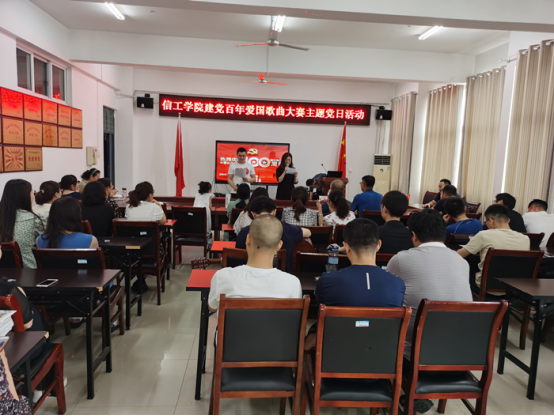 为庆祝中国共产党成立100周年,重温百年峥嵘岁月,传承中国革命精神,推进党史学习教育走深走实。6月29日下午,信息工程学院在工科楼举办建党百年爱国歌曲大赛主题党日活动。信息工程学院全体教职工参加本次活动。