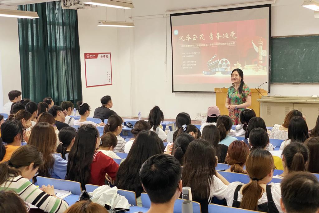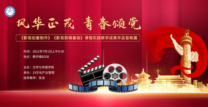 为庆祝中国共产党成立100周年,激发学生爱党爱国热情,强化实践教学成果,提高学生创新能力,提升人才培养质量。7月1日上午9:30,文学与传媒学院在教学楼B208举办“风华正茂 青春颂党”实践教学成果作品首映展,以教学成果形式向党汇报,庆祝建党百年华诞。文学与传媒学院党委书记李月云、副院长张德岁,文化产业管理专业教师王倩、邢雪娥,新闻学专业教师蒋月侠、魏逸扬,辅导员王龙龙,2019级、2020级文化产业管理班学生参加此次活动,首映展由指导教师张浩主持。