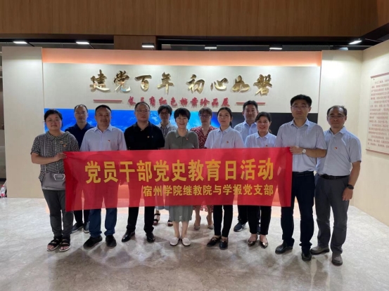 6月29日,继续教育学院与学报党支部联合宿州电信财务审计党支部组织党员赴宿州市档案馆参观“建党百年,初心如磐”长三角红色档案珍品展,开展党员干部党史教育日活动。在讲解员的带领下,党员们观看了展厅内生动、形象的文字图片、历史文物、影像资料等红色档案珍品,回顾了中国共产党与长三角地区人民心连心、同呼吸、共命运的岁月,缅怀了革命先辈们的英勇事迹,从党史中汲取了奋发拼搏、迎难而上的力量。