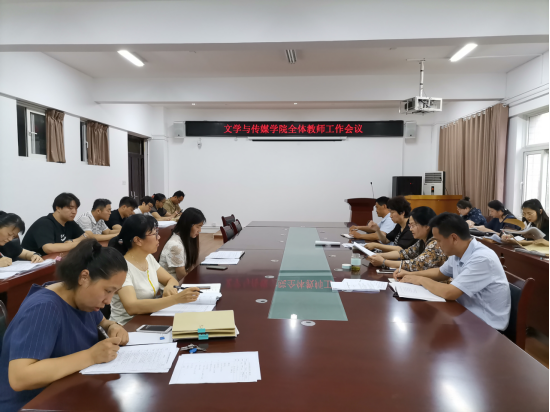 7月6日上午8:30,文学与传媒学院在教A303召开全体教师教学工作会议,党委书记李月云,党委副书记、院长蒋宗霞,副书记王绍卫,副院长张德岁及全体教师参会。会议由蒋宗霞主持。
