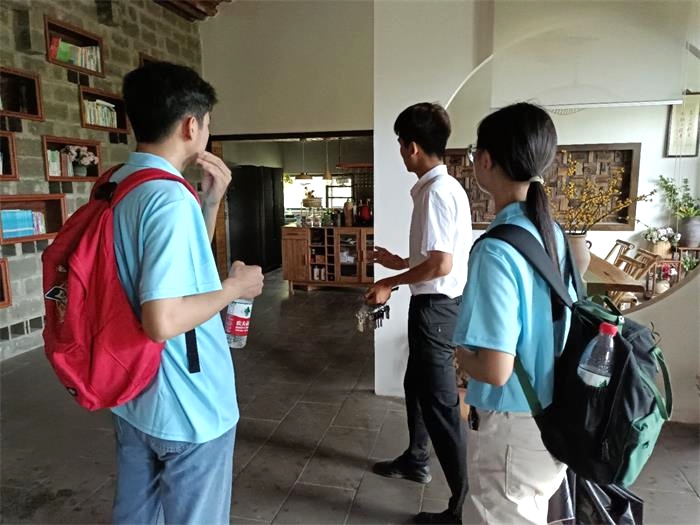 实践调研团到达良梨镇政府后,在与政府负责人的访谈中了解到砀山县政府对电商脱贫做出的努力及各种惠农政策。随后,在卢书记的带领下来到了位于魏寨村的酥梨小镇,小镇由魏寨民宿群、酥梨小镇产学研中心、葛花滩拓展基地这三部分组成。其中,魏寨民宿群共有8家民宿,它们风格迥异,颇具匠心,如吊脚楼风格民宿“坡上”、纯中式民宿“亼”(通“集”)等等,这些民宿将成为网红新的“打卡地”。酥梨小镇产学研中心可同时容纳100余人住宿、学习、培训、科研办公、学术交流。而葛花滩拓展基地依托当地景点建设,目前已完成大型拓展训练基地、写生亭等建设,下一步目标是建设成集农事体验、休闲观光、服务娱乐、爱国主义教育为一体的综合性场所。之后,实践调研团队来到了砀山酥梨的发源地良梨村,并且在樊书记的带领下参观了梨园和桃园。同时了解到良梨村在政府的引领下依靠当地特色产业带动脱贫,采用“电子商务+扶贫”模式,逐步实现脱贫致富的工作。