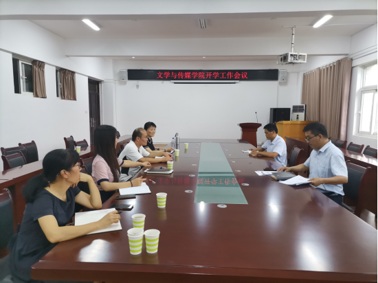 8月20日下午3点,文学与传媒学院在教A303召开2021-2022-1学期开学工作会议,党委书记杨文艺,党委副书记、院长张德岁,教研室主任和科级干部参加会议。会议由张德岁主持。