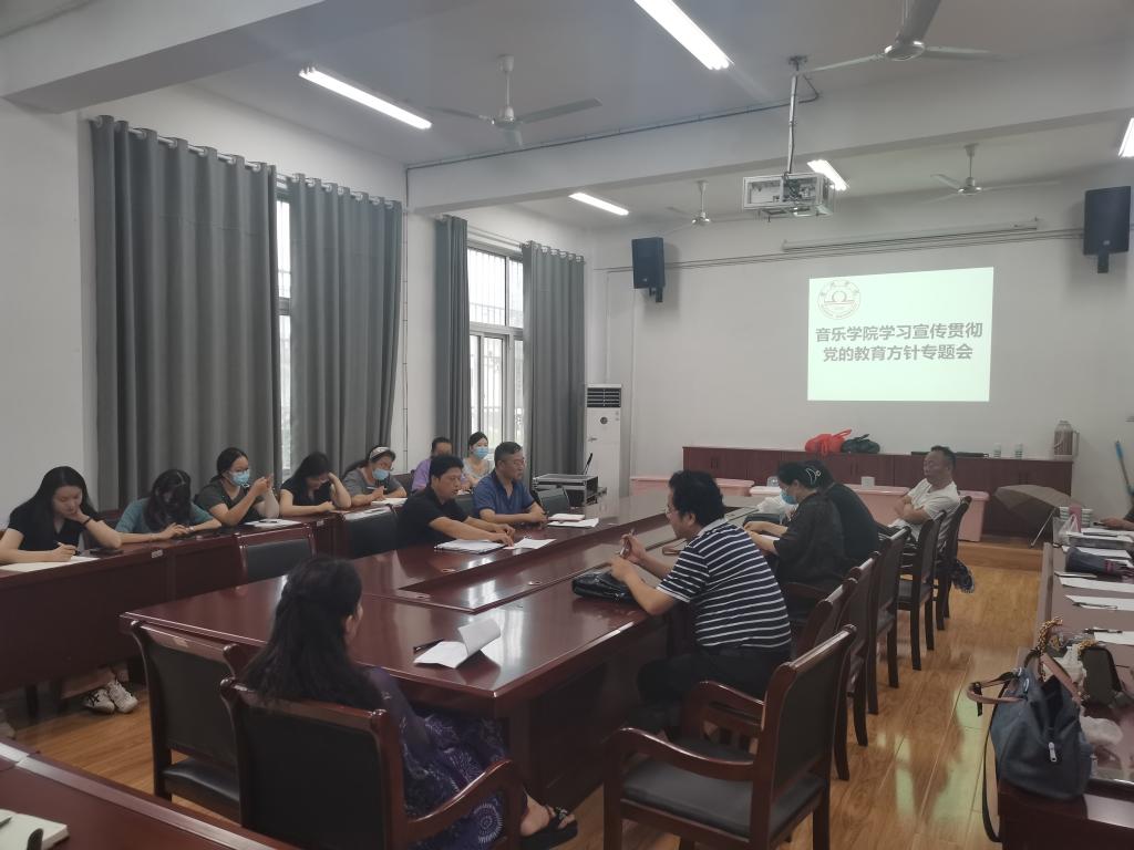 8月26日,音乐学院在会议室召开学习贯彻党的教育方针专题会。党委副书记、院长王善虎、党委副书记(临时负责)徐强以及全体教职工参加了会议,会议由王善虎主持。