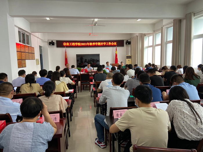 8月27日上午,信息工程学院在工B315会议室召开全体教职工会议,部署2021-2022第一学期开学工作,会议由信息工程学院党委副书记、院长许海峰主持,学院党委副书记余晓永(临时负责),党委副书记、纪委书记吴孝银,组织员黄永刚及信息工程学院全体教职工参加会议。