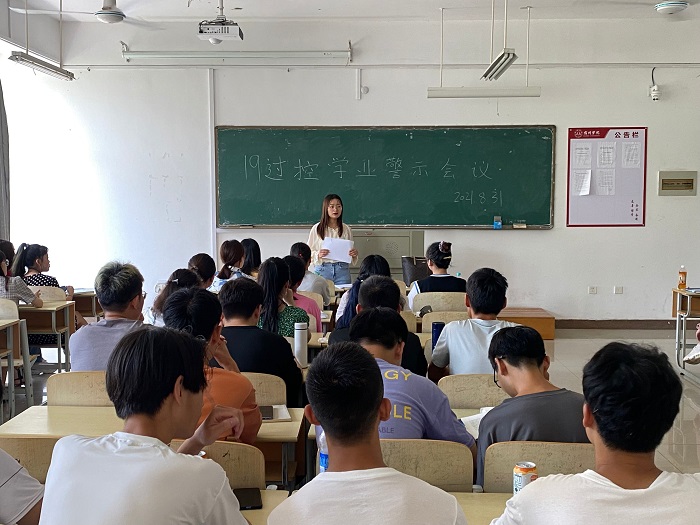 会上,辅导员向同学们介绍了学校学业警示制度,对上一学年度挂科的学生予以学业警示,要求学生重视学业成绩,分析总结不及格的原因,变压力为动力,认真准备补考,全体学生要尽快进入学习状态,及时转变学习态度,为新学期提高学业成绩打下良好的基础。其次,带领学生认真学习学校关于学士学位授予等相关文件,希望同学们要加强自律,养成自我学习能力,加强自我管理、自我约束、自我教育。最后,根据学生的年级提出具体的建议,学生要根据自己的学业目标和未来择业意向,打好专业基础,同时,学院也将精准帮扶学业困难学生顺利完成学业。