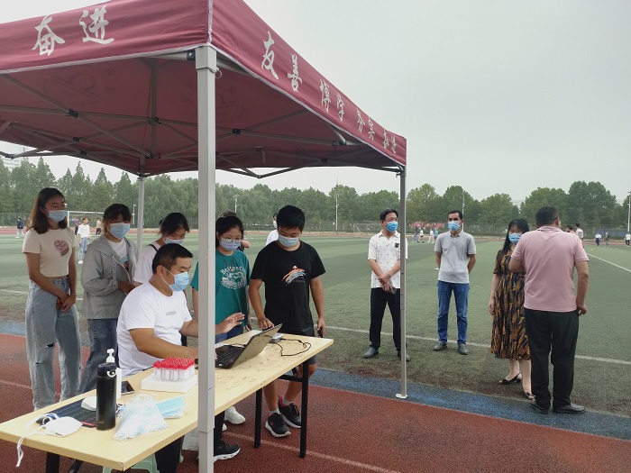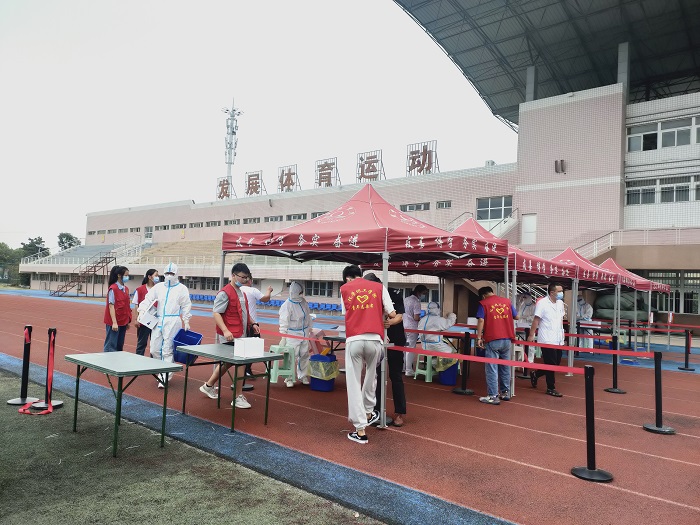 为切实做好疫情防控工作,根据我校师生核酸检测统一安排,2021年9月1日下午1:00,化学化工学院开展集中核酸检测取样,全体师生接受了检测。学院党委副书记史洪伟,党委副书记、院长卓馨在现场组织学生有序进行检测。