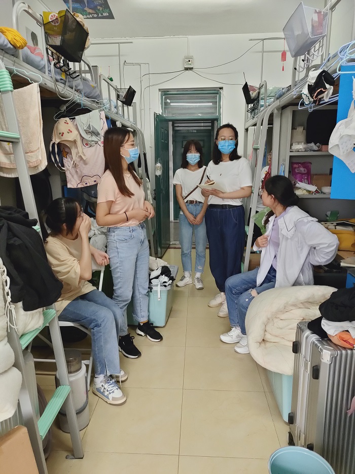 在走访过程中,辅导员对宿舍疫情防控工作实际情况、违规使用电器等安全隐患进行了全面检查,强调当前仍处于疫情期间,同学们应尽力减少出行,做到非必要不出校,做好个人防护。辅导员进一步询问了学生返校情况和生活等方面有无困难,提醒学生们新学期做好新的规划,合理安排时间。同时针对学生反映的宿舍生活遇到的各种困难和问题,给出了有效的建议。
