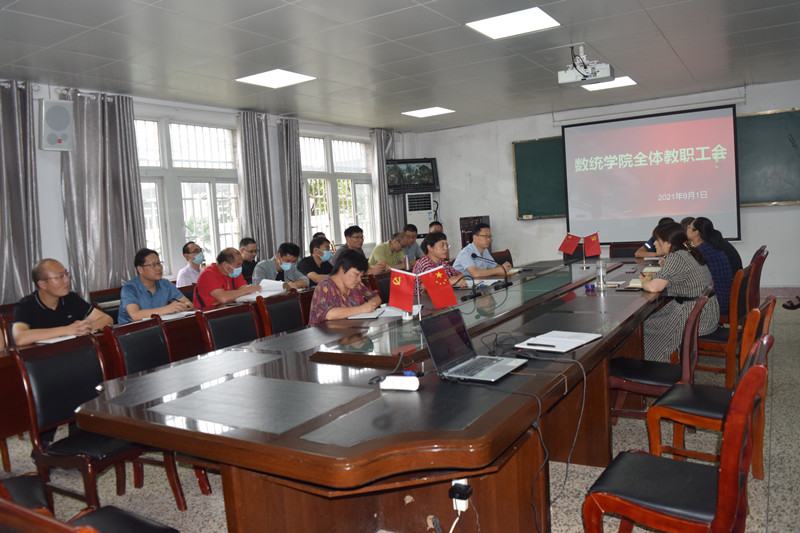 9月1日下午,数学与统计学院在会议室召开全体教师会,学习《中华人民共和国高等教育法》和《中华人民共和国教育法》,并组织观看“七一勋章”获得者张桂梅的先进事迹。数统学院党委副书记陈攀峰、副院长徐秀荣及全体教职工参加了此次教职工理论学习会。