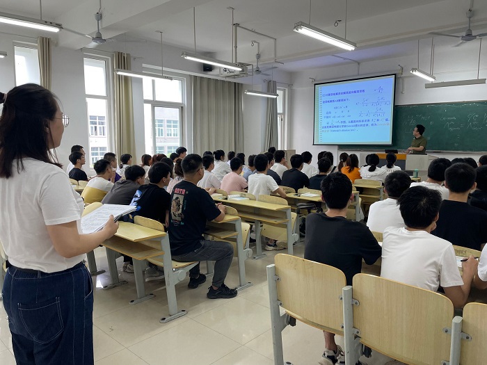 为了解学生课堂学习状态和课堂纪律情况,有针对性的进行学业帮扶。按照校《关于开展2021年秋季开学初“四个一”主题活动的通知》文件要求。化学化工学院于2021年9月7日开展“进一次课堂”活动,院长卓馨带队,全体辅导员参加此次活动。