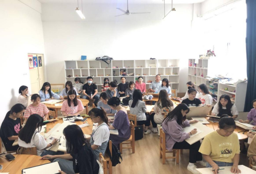 两位新进教师为此次公开课进行了精心的准备。朱丽元老师带领学生在《素描》课堂上了解球体的绘画步骤,通过直接感知和提问引导的方式帮助学生掌握素描写生的观察方法,借助线条和明暗来表达素描中的三大面、五大调子和球体的质感,培养了学生的造型能力和审美能力,课堂气氛活跃,同学们兴趣盎然。