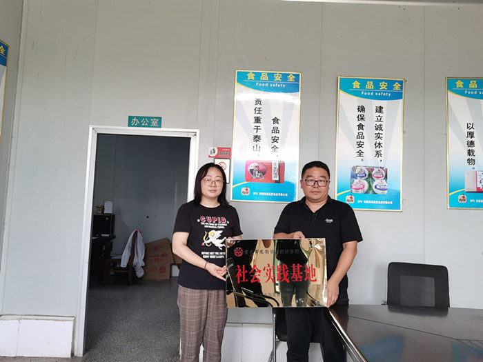 参加本次“暑期实践基地”挂牌仪式的谢枫经理介绍了公司合作发展目标,对我院与公司共建实践基地,开展深入长期合作表达了深切的期望。刘静对公司为我院学生社会实践提供的广阔平台和大力支持表达了真挚谢意。数统学院将以本次社会实践基地的成立为契机,与尚品萱食品有限公司共同努力,建立长期紧密合作,将社会实践项目多样化,努力促进双方交流,实现双赢。