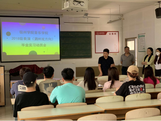 2021年9月9日上午10:00,音乐学院在艺术楼A205召开2018级表演(泗州戏方向)专业实习动员大会。党委副书记、院长王善虎,党委副书记(临时负责)徐强,副院长钦媛,指导教师杨梦娜,18级表演(泗州戏方向)全体同学参加会议。
