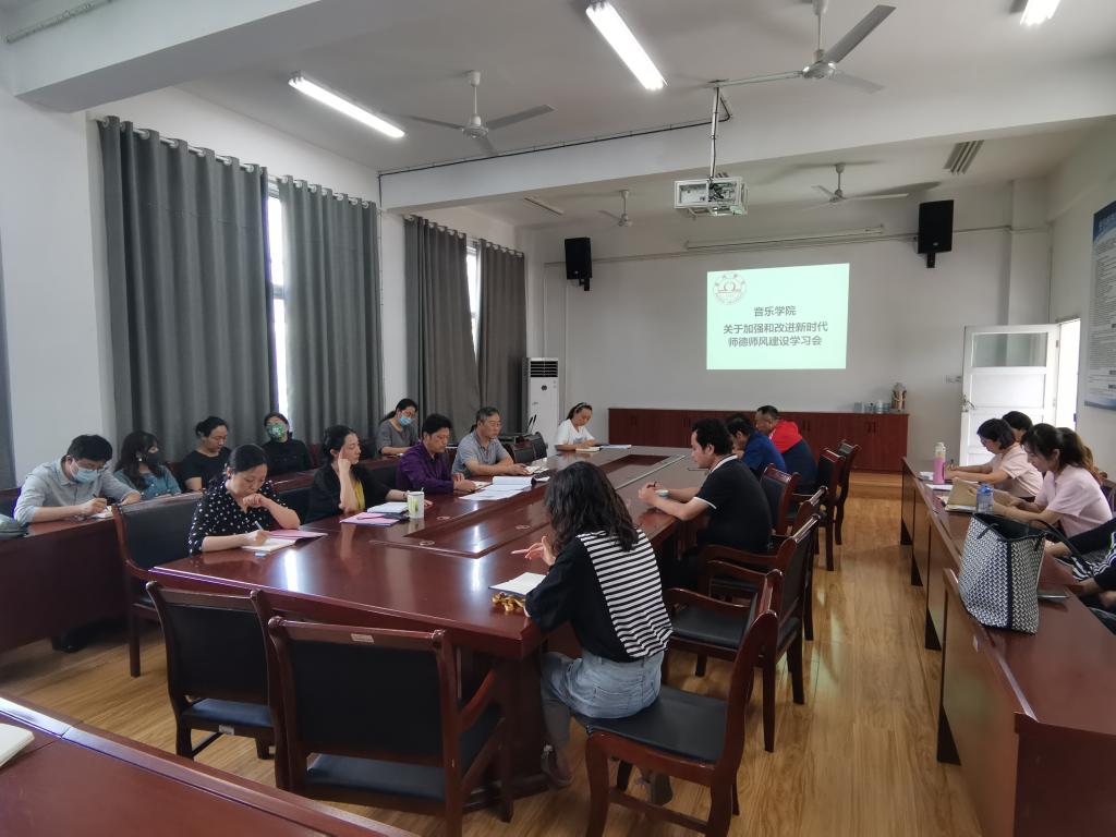 为进一步加强师德师风建设,培养新时代高素质教师队伍,9月8日,音乐学院在一楼会议室召开了关于加强和改进新时代师德师风建设学习会。党委副书记、院长王善虎,党委副书记(临时负责)徐强,党委副书记、纪委书记李小娜,副院长钦媛以及全体教职工参加了会议,会议由王善虎主持。