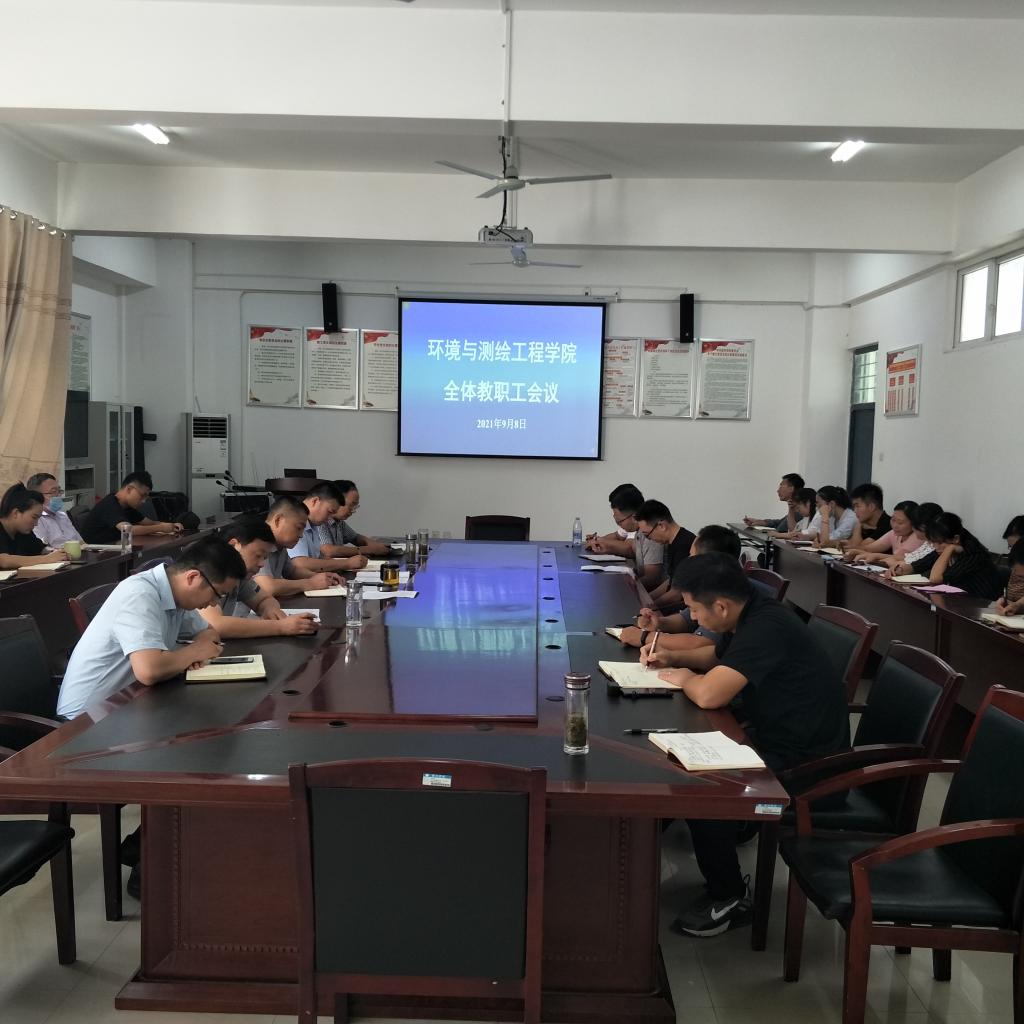 2021年9月8日下午3:10,环境与测绘工程学院在工科楼A315召开全体教职工会议,党委副书记(临时负责)胡冰,党委副书记、院长张海洋,党委副书记、纪委书记李建新,副院长徐国伟、李琦及学院全体教职工参加了会议。会议由张海洋主持。