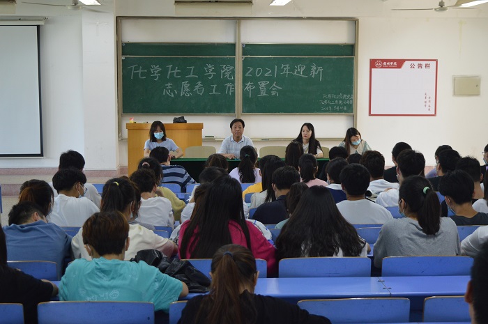 9月10日下午,化学化工学院在教学楼B201召开化学化工学院迎新志愿者工作布置会,本次会议由化学化工学院党委副书记(临时负责)史洪伟主持,院党委副书记刘茜、新生辅导员以及全体志愿者参加会议。