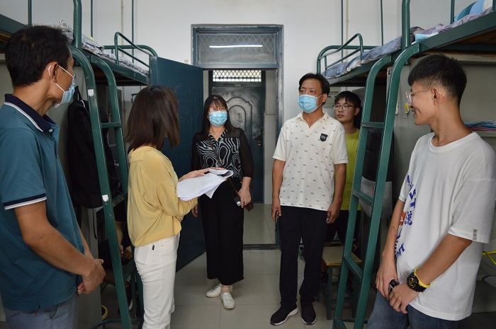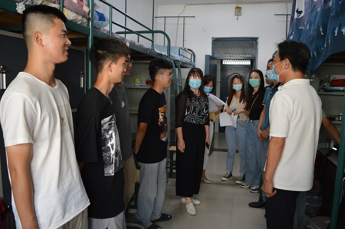 在走访过程中,党委副书记查看了学生宿舍基础设施、环境卫生等情况,并深入寝室与同学们亲切交流。希望同学们做好宿舍内务整理,维持良好宿舍环境,提醒大家要提高疫情防护意识,同时嘱咐同学们注意休息和饮食。辅导员们对大家提出的关于新生入学、生活和校园安全管理等各方面的问题进行记录并一一解答。并对同学们提出期望:养成健康文明、积极向上的生活习惯,保持阳光开朗、乐于表达的良好心态;珍惜在校时光,充分利用课余时间开展各种有益身心健康的科研、文体活动;注意身体健康,保持健康的心理状态,共同营造安全有序的校园环境,留下丰富、充实、美好的大学时光。